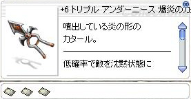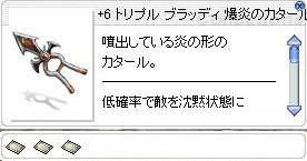 新規スロットエンチャント実装直後に爆炎のカタールを数本持参し、穴あけに成功したもののちょっと過剰精錬に成功した片割れ。