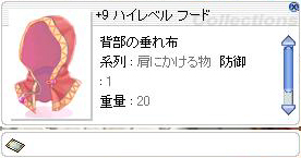 可能ならば+9マントで入手したかったが、フードの倍以上の値段だったため断念orz